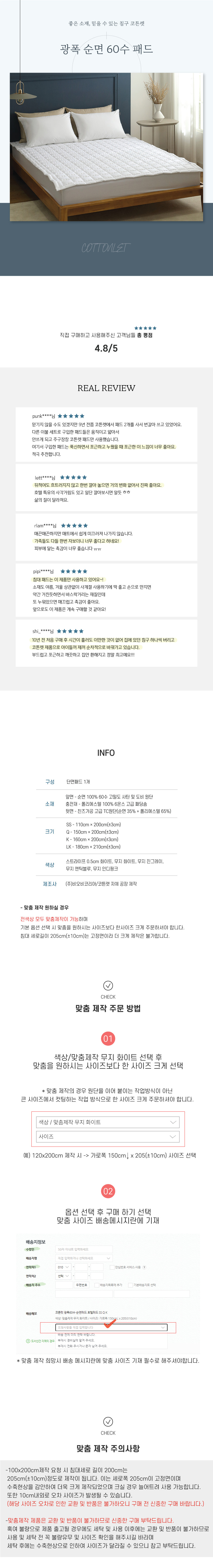 호텔침구 광폭 순면60수 고급누비 단면패드(SS/Q/K/LK/패밀리/맞춤제작)
