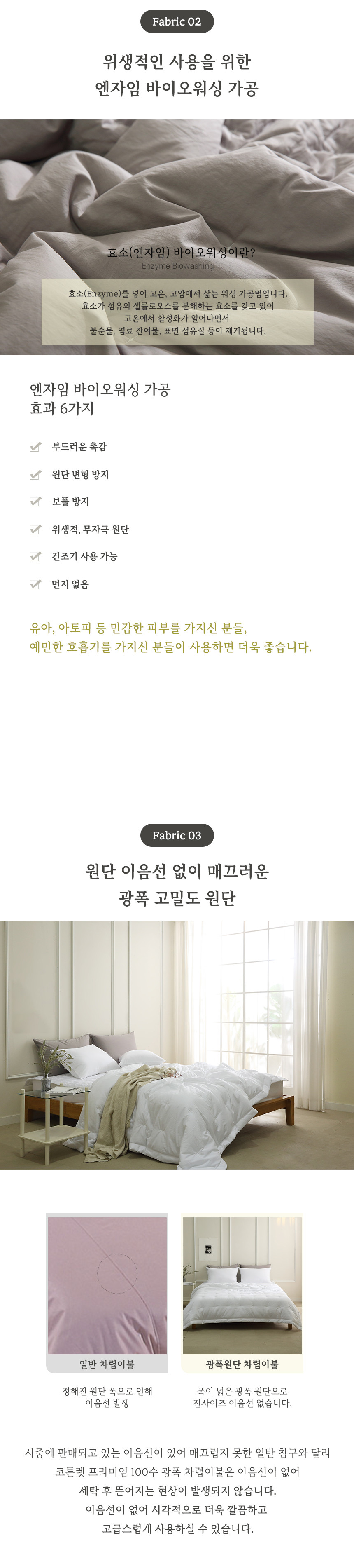 코튼렛 사계절 광폭순면 100수 고밀도 바이오워싱 차렵이불 SS Q