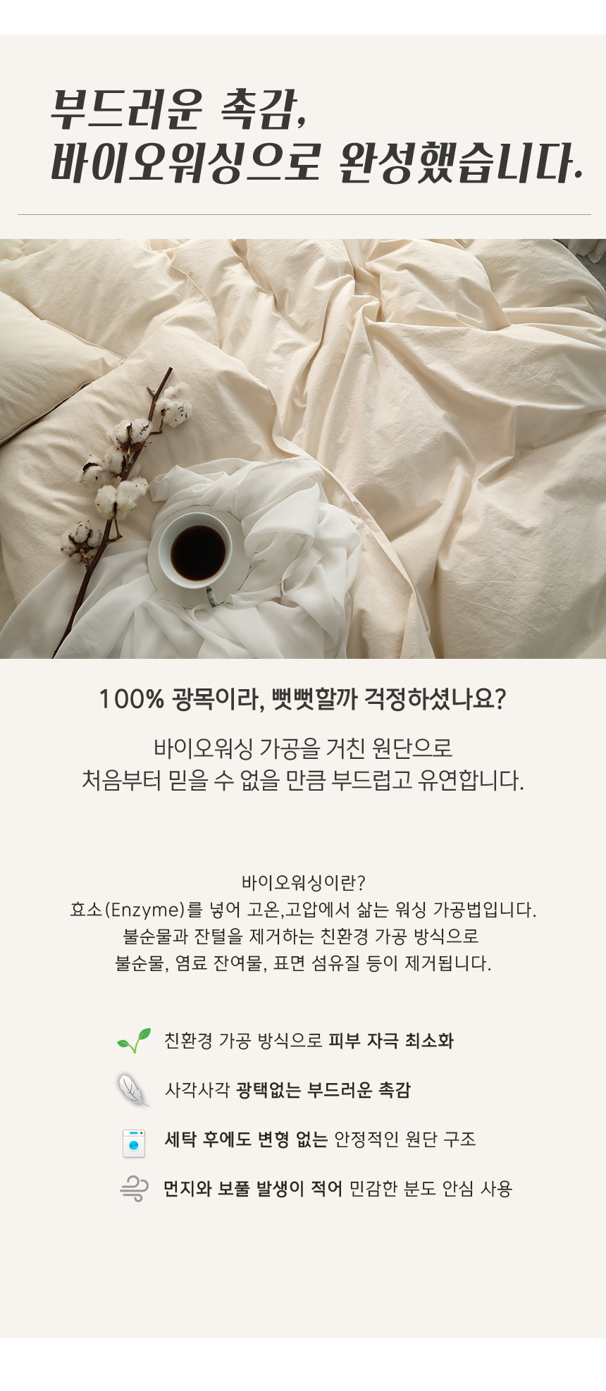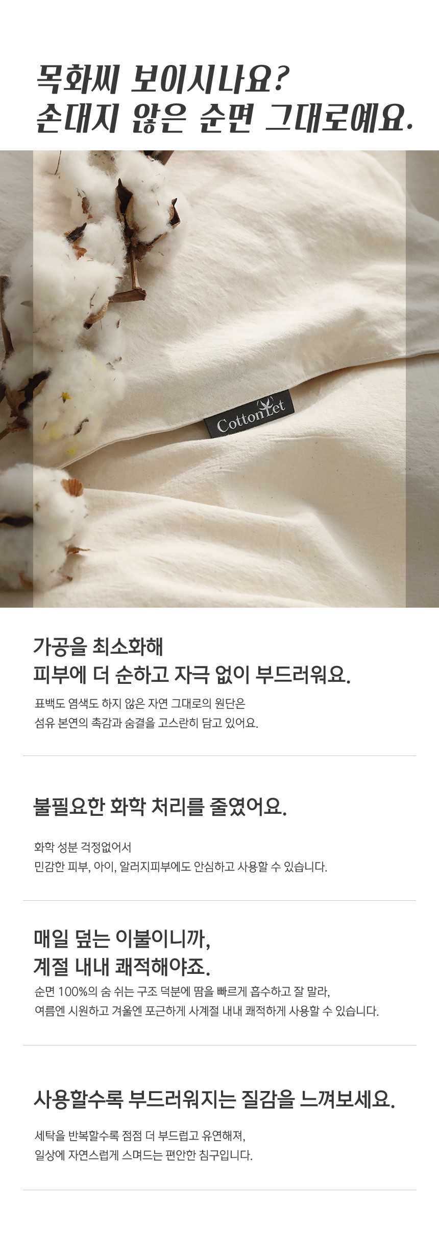 코튼렛 호텔침구 광폭 고밀도 순면 16수 바이오워싱 광목 이불커버 세트 SS